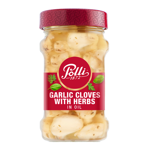 Amaze your guests with a suprising appetiser: succulent garlic cloves, seasoned with basil and parsley, ready to eat or perfect to enrich salads and pasta sauces.